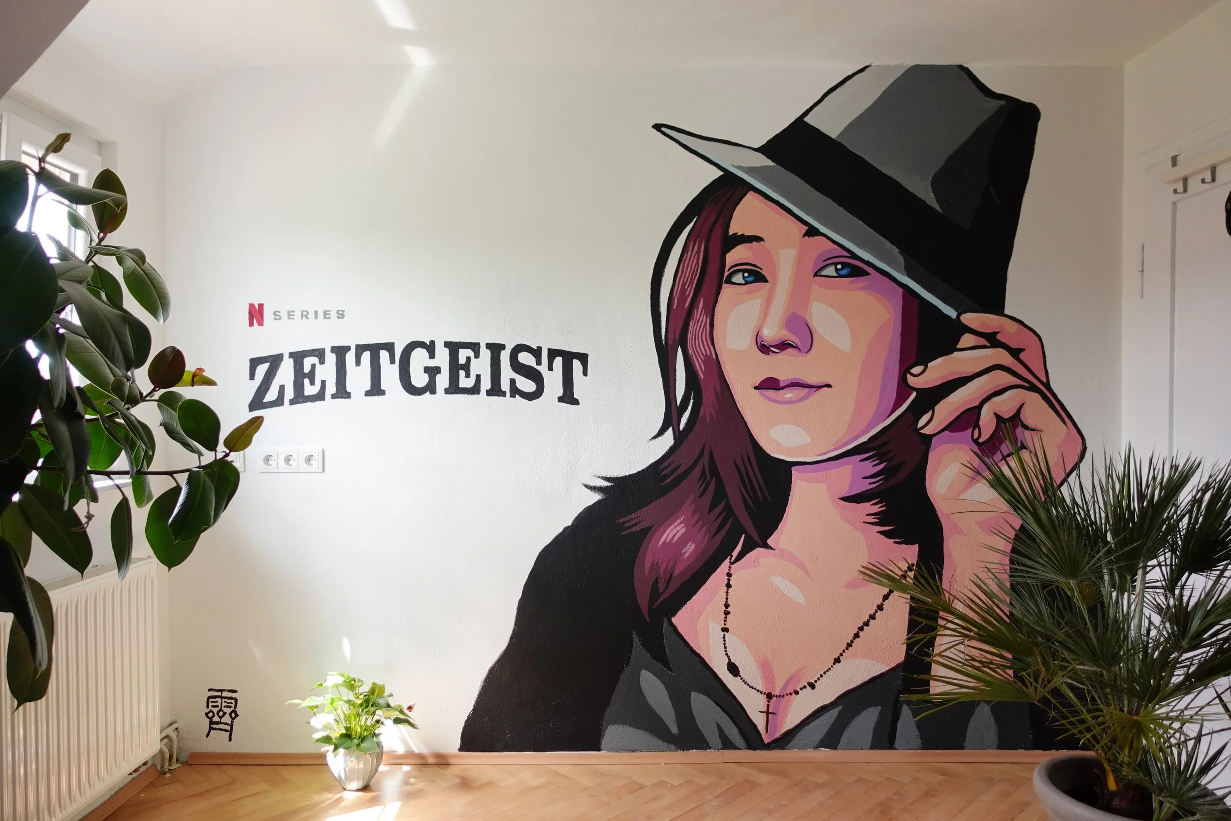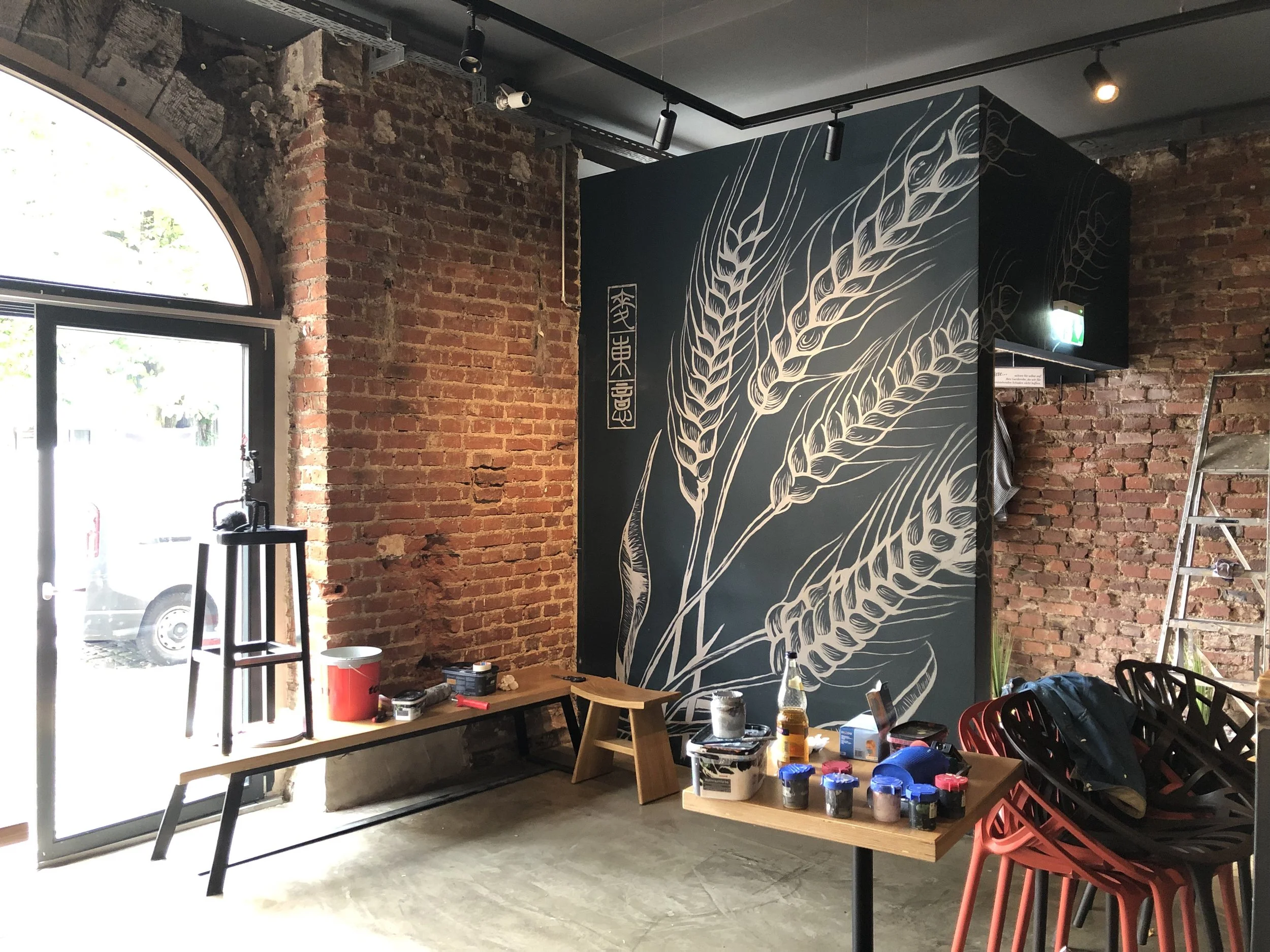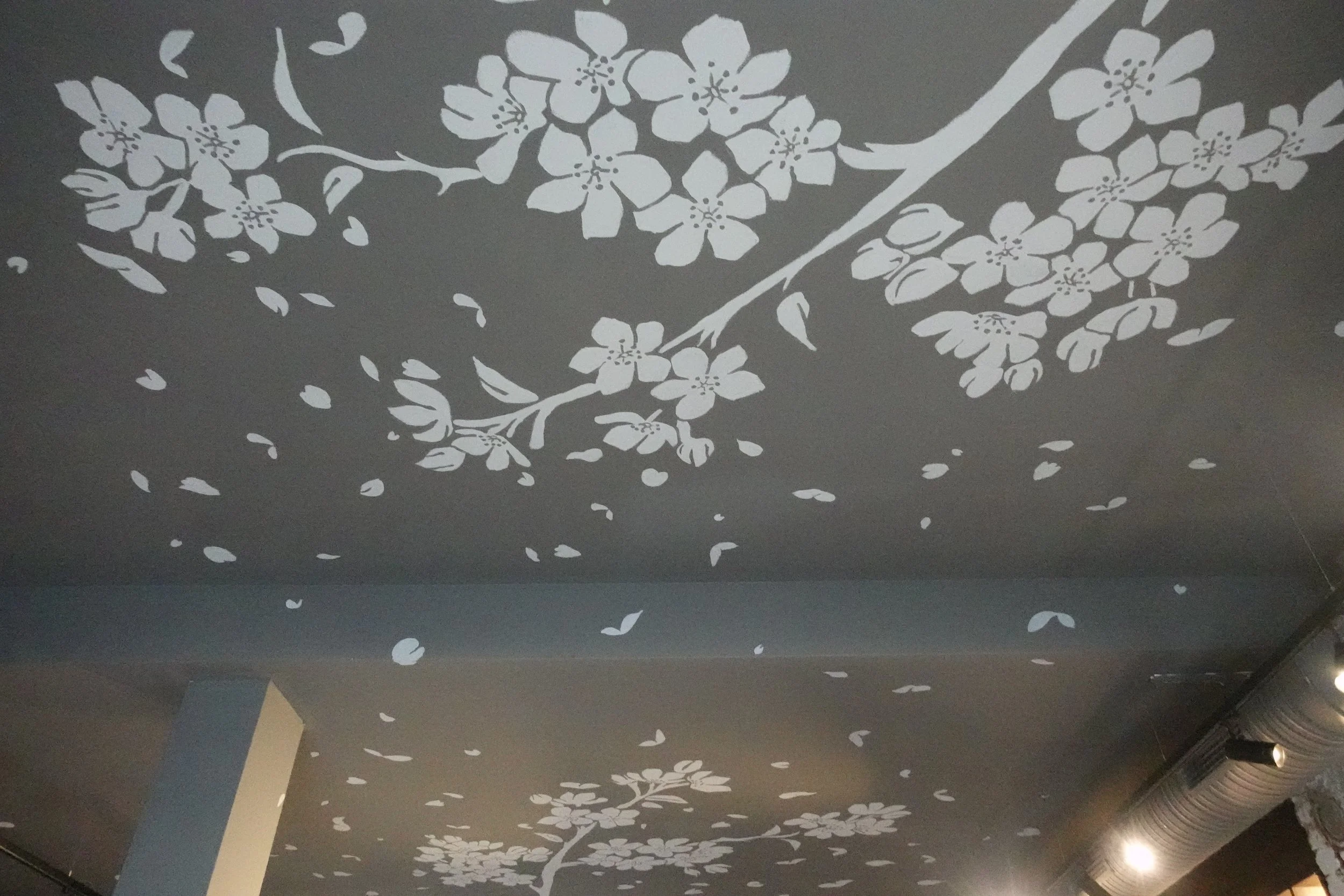 Eine kleine Auswahl aus bisherigen Murals 'PRANA YAMA' Meßstetten 'Growth' Freiburg 'Zeitgeist' Geislingen 'Kirschblüten Decke' Freiburg 'le Salon Cheveux' Balingen 'Flow' Stuttgart 'Umami' Stuttgart